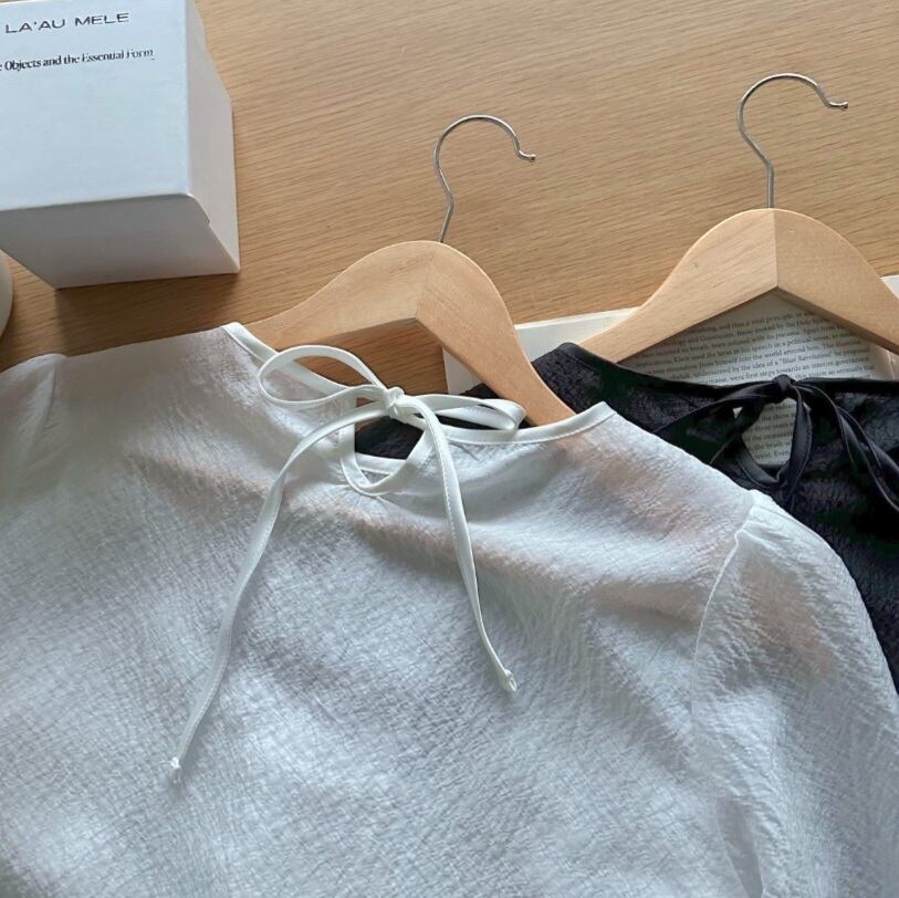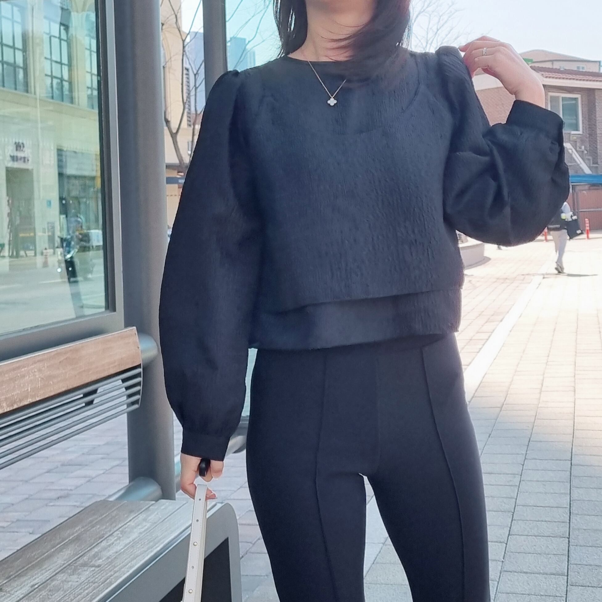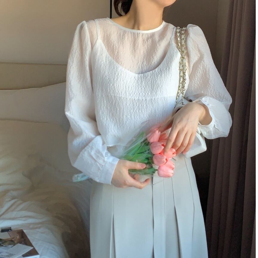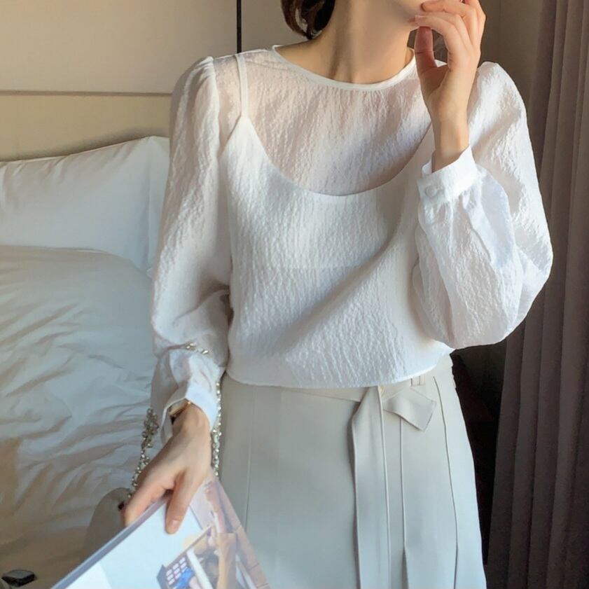 レディース ブラウス シャツ レイヤード風 トップス ガーリー シワ加工 春物 韓国 韓国ファッション アパレル