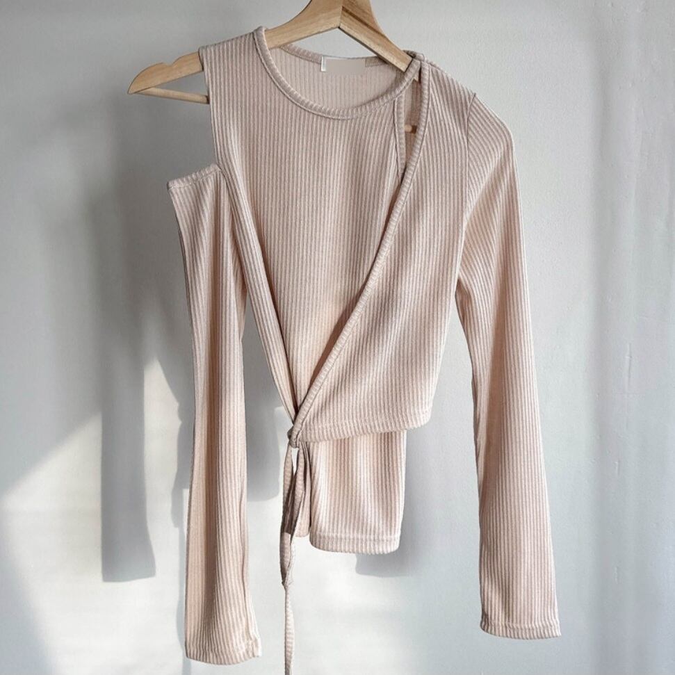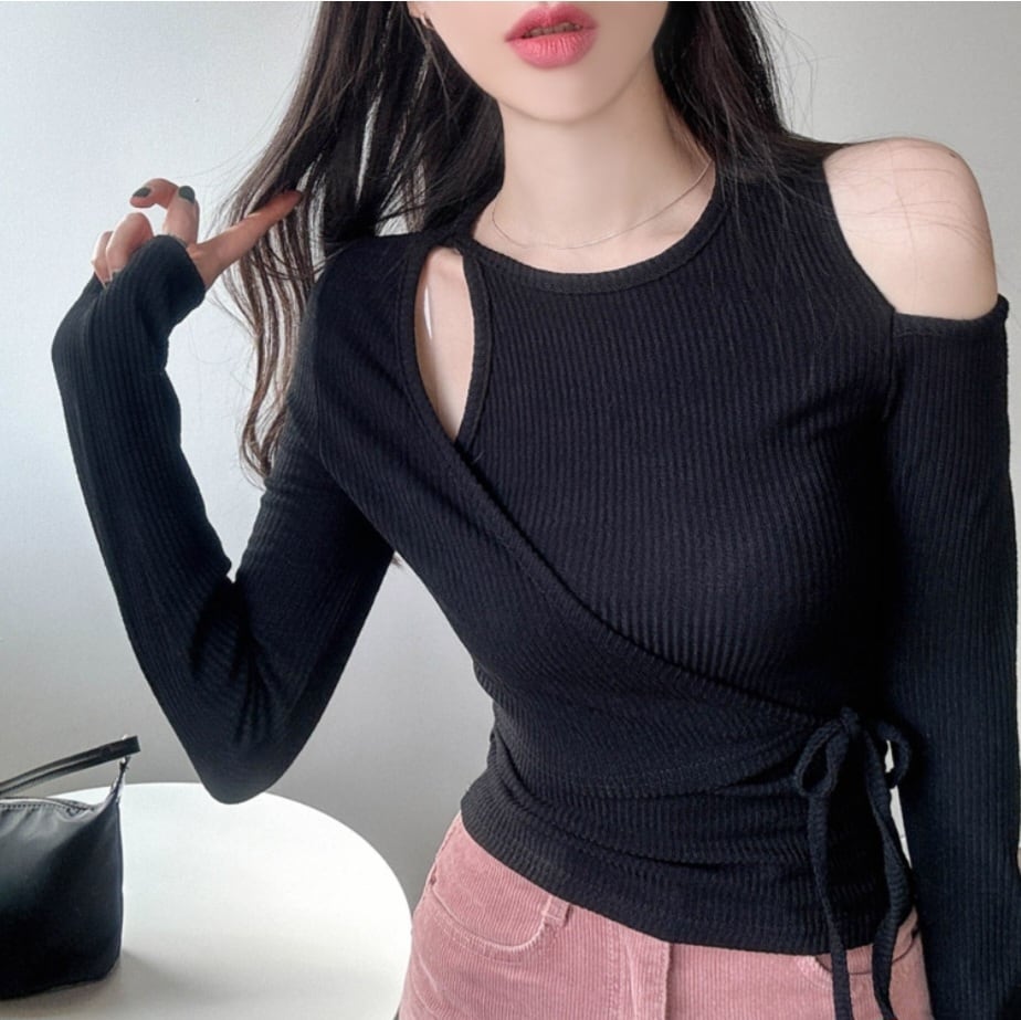 レディース トップス 長袖 個性的 ラップロンティー 春物 韓国 韓国ファッション 肩見せ セクシー