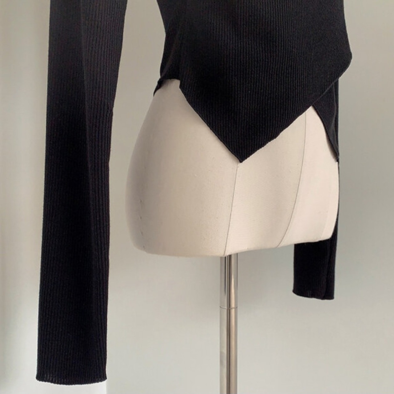 V型にカットされたことによってウエストラインを細く見せ、ショート丈で脚長に見せてくれるスタイルアップ商品です!