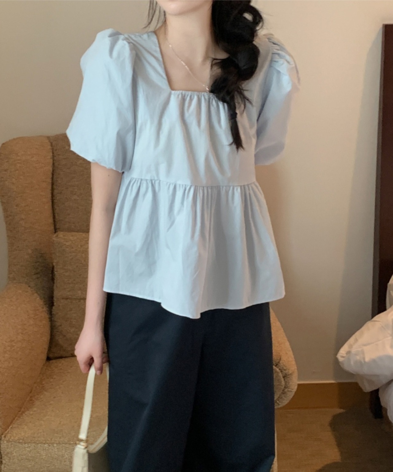 人気のパフスリーブのブラウス