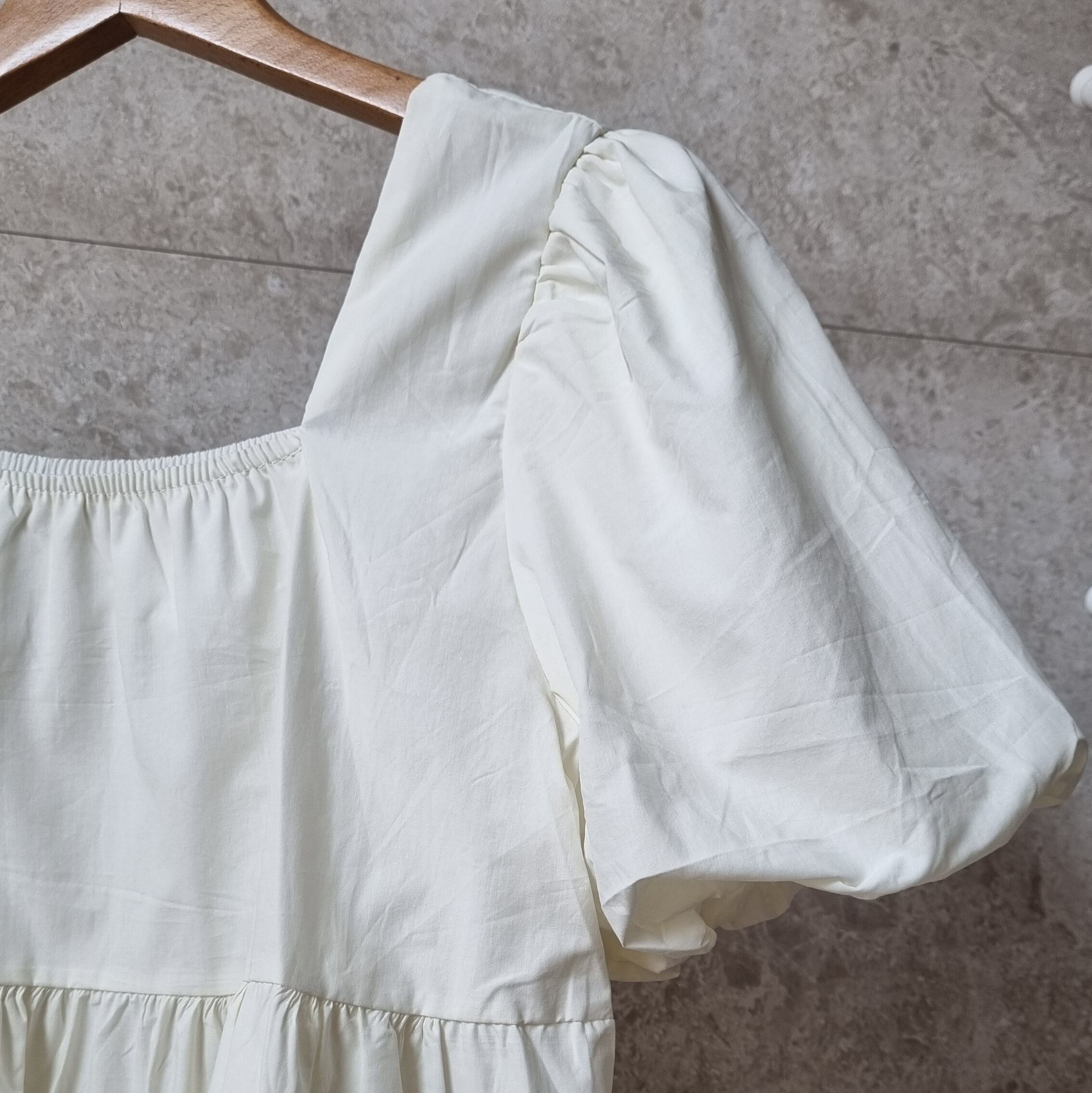 パフスリーブ フリルブラウス バックストラップ スクエアネック キュート