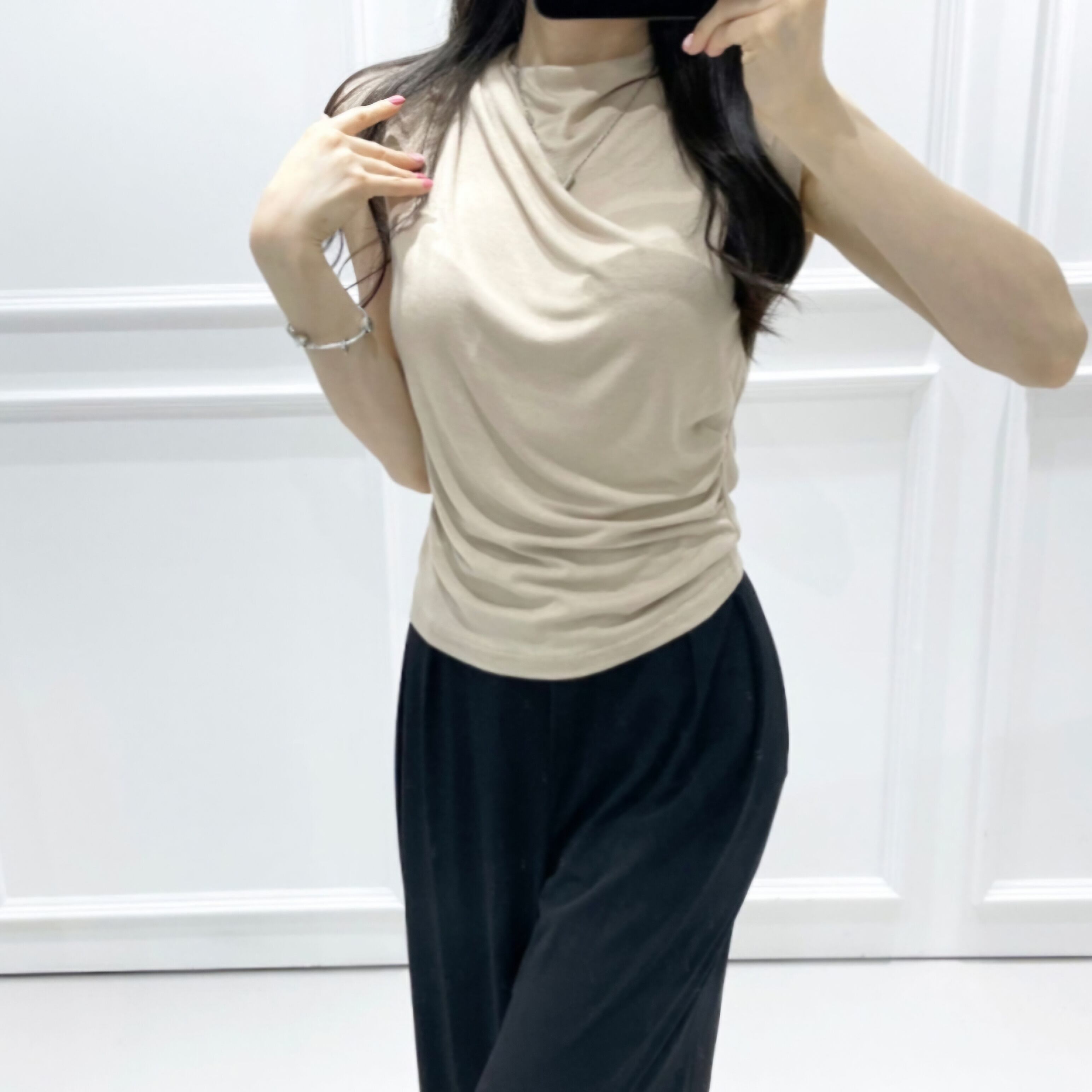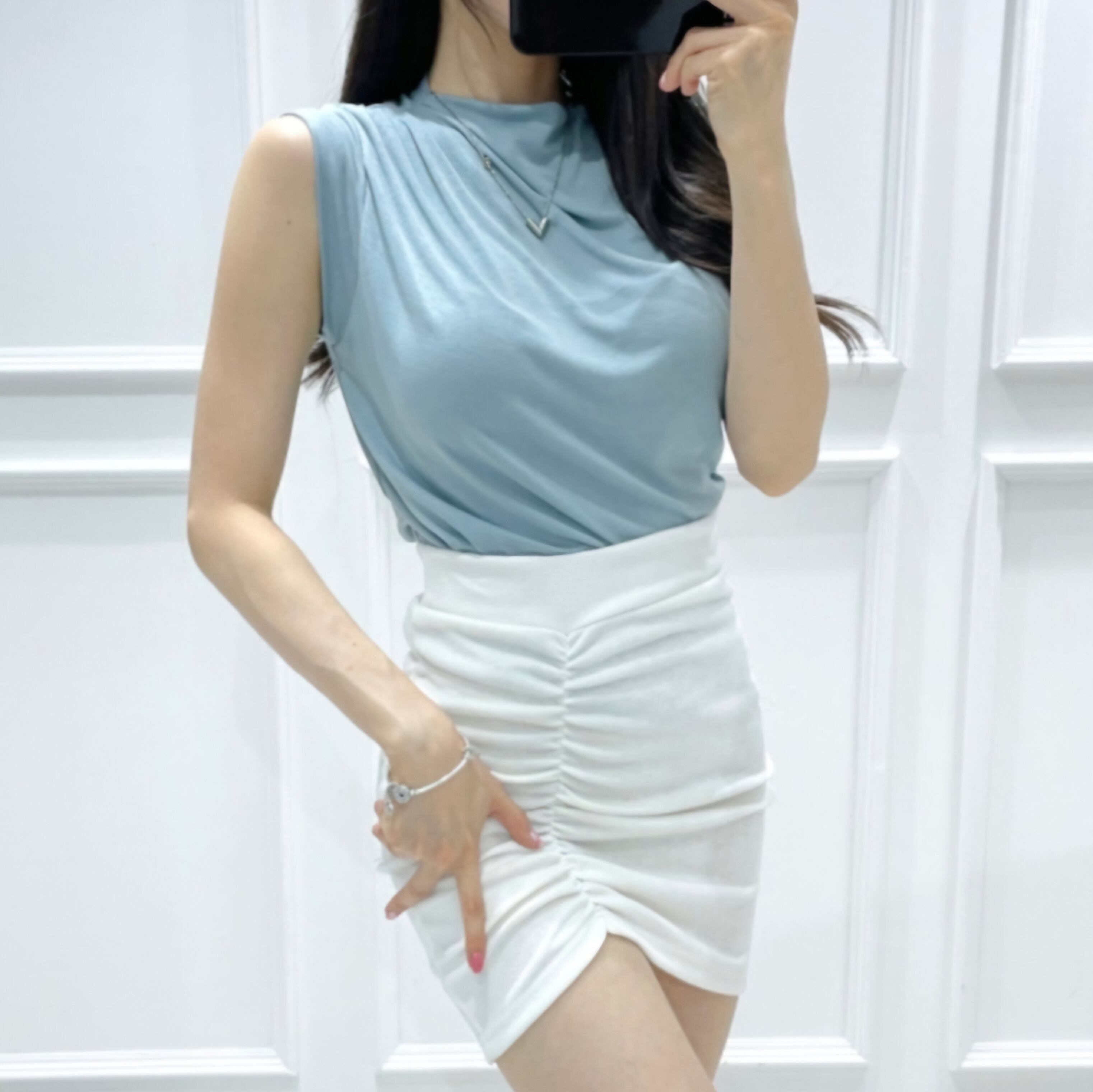 レディース ブラウス シャツ チュニック ノースリーブ 半袖 Tシャツ ドレープ シャーリング オフショルダー レイヤード カットソー シースルー 春物 夏物 韓国 韓国ファッション セクシー オフィス オフィスルック きれいめ アパレル 韓国ファッションショップ