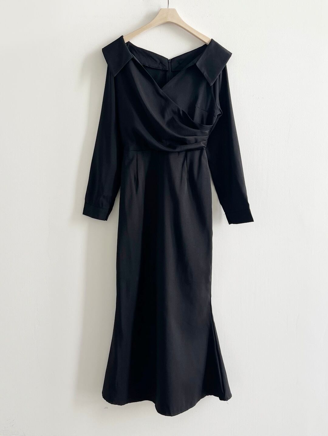 スカートの裾はマーメイドで長過ぎず、足首を見せることにより足がほっそり、スタイル良く見せてくれます。