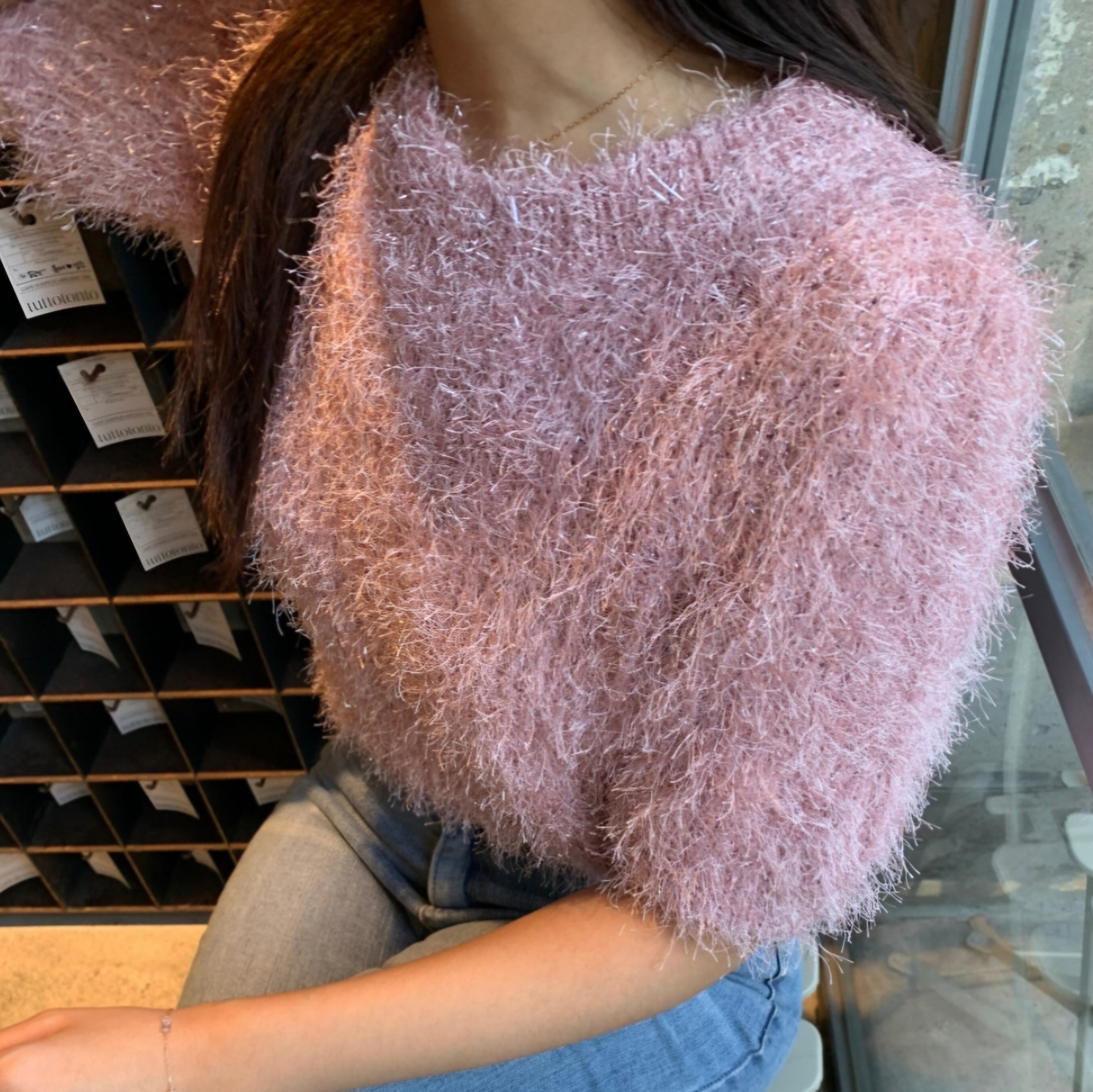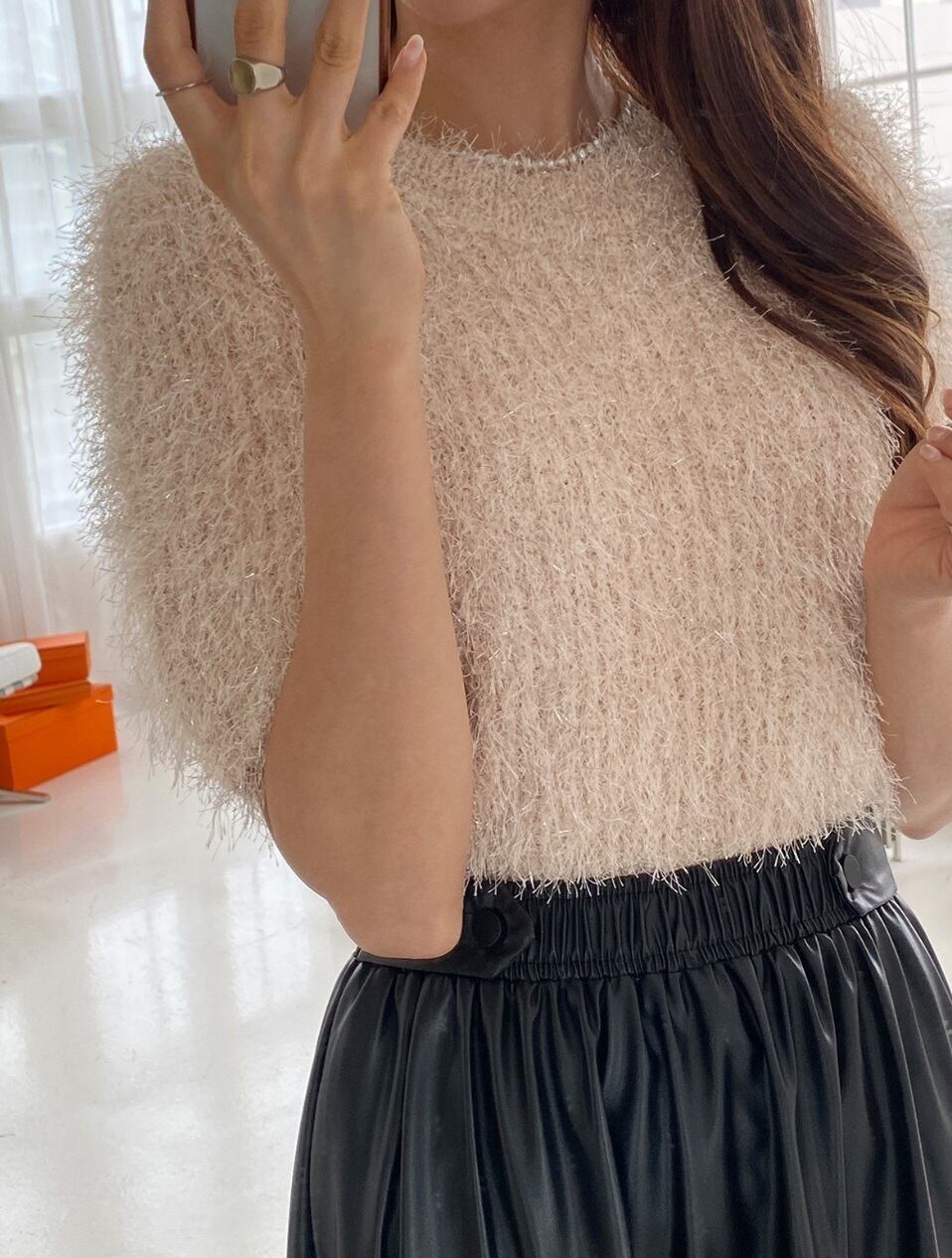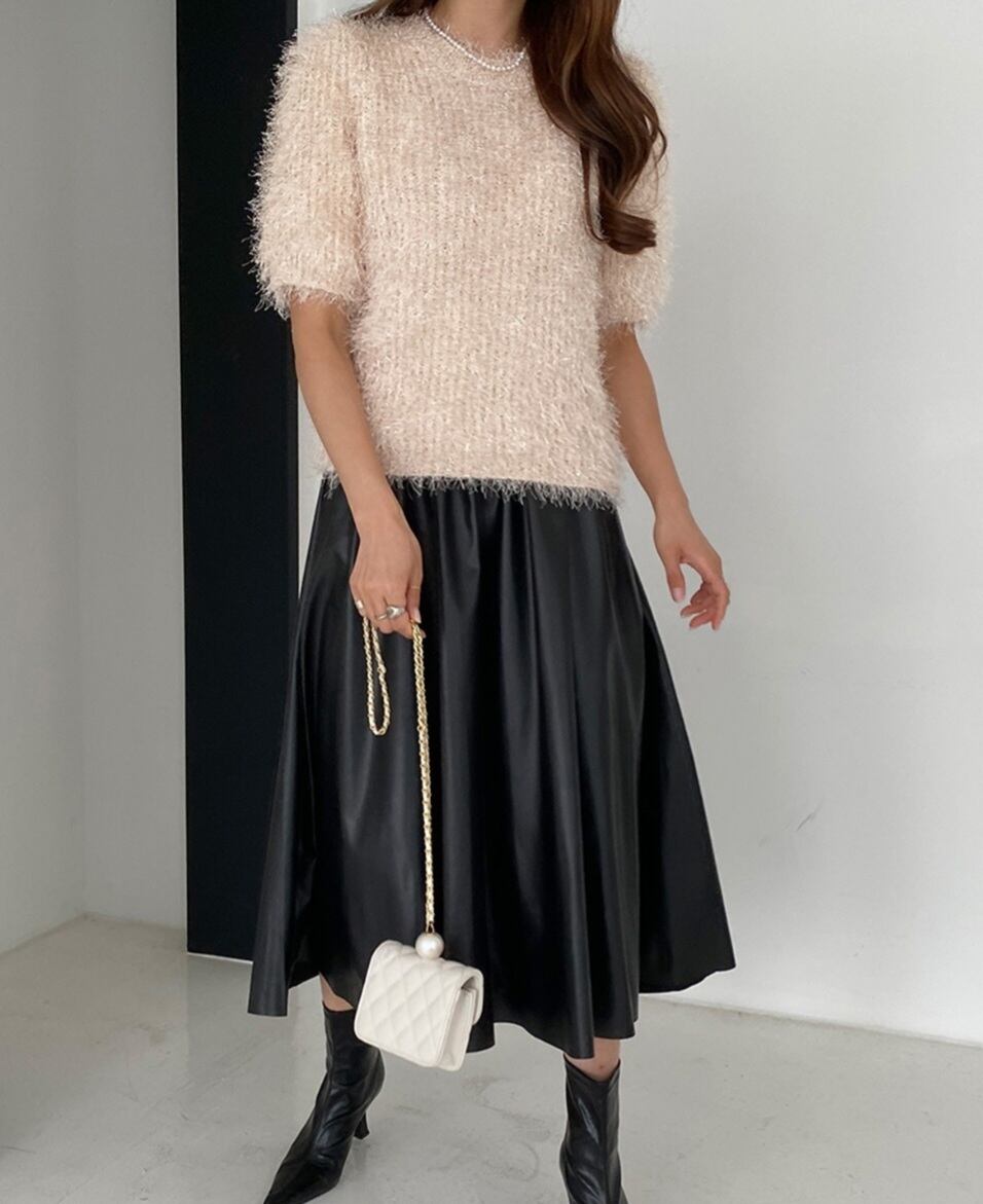 ふわふわのニット生地にラメがキラキラと華やかな印象を演出してくれます。
