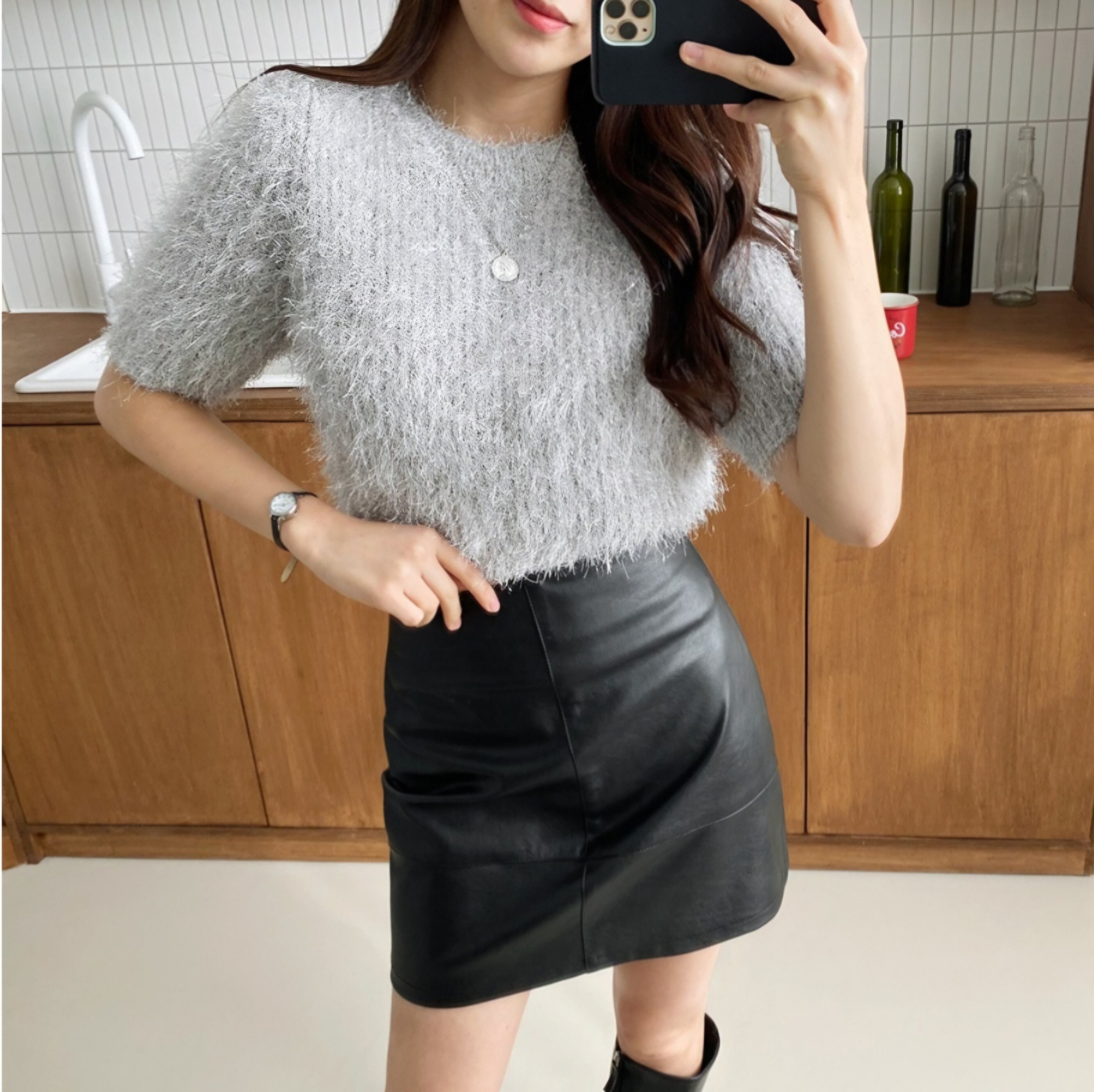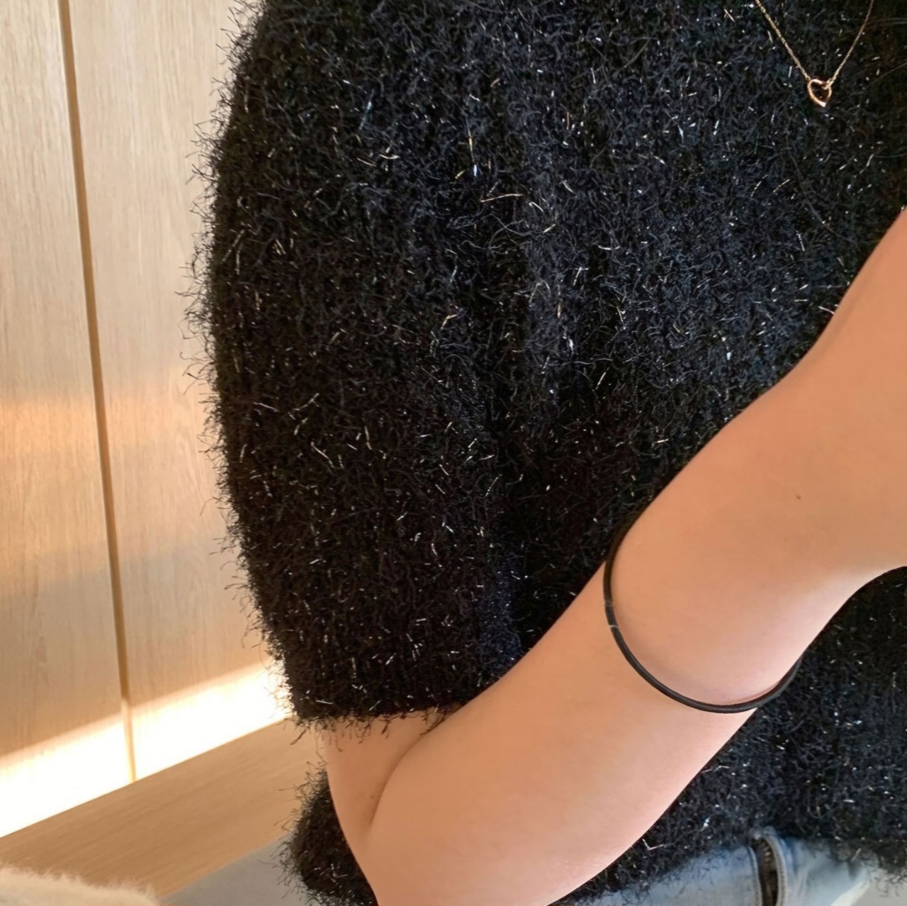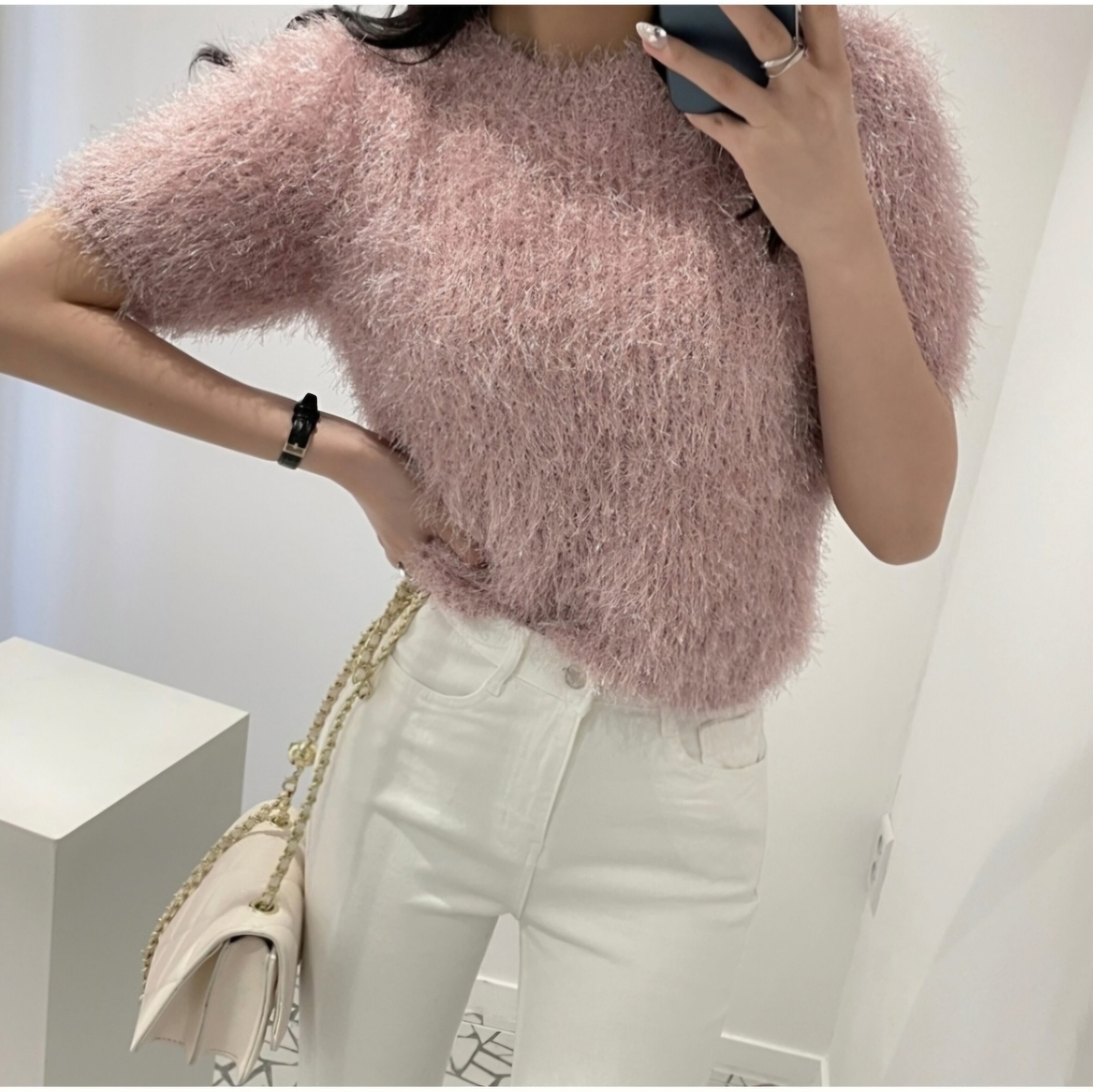 ふわふわのニット生地にラメがキラキラと華やかな印象を演出してくれます。