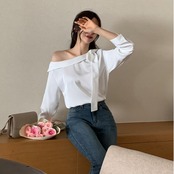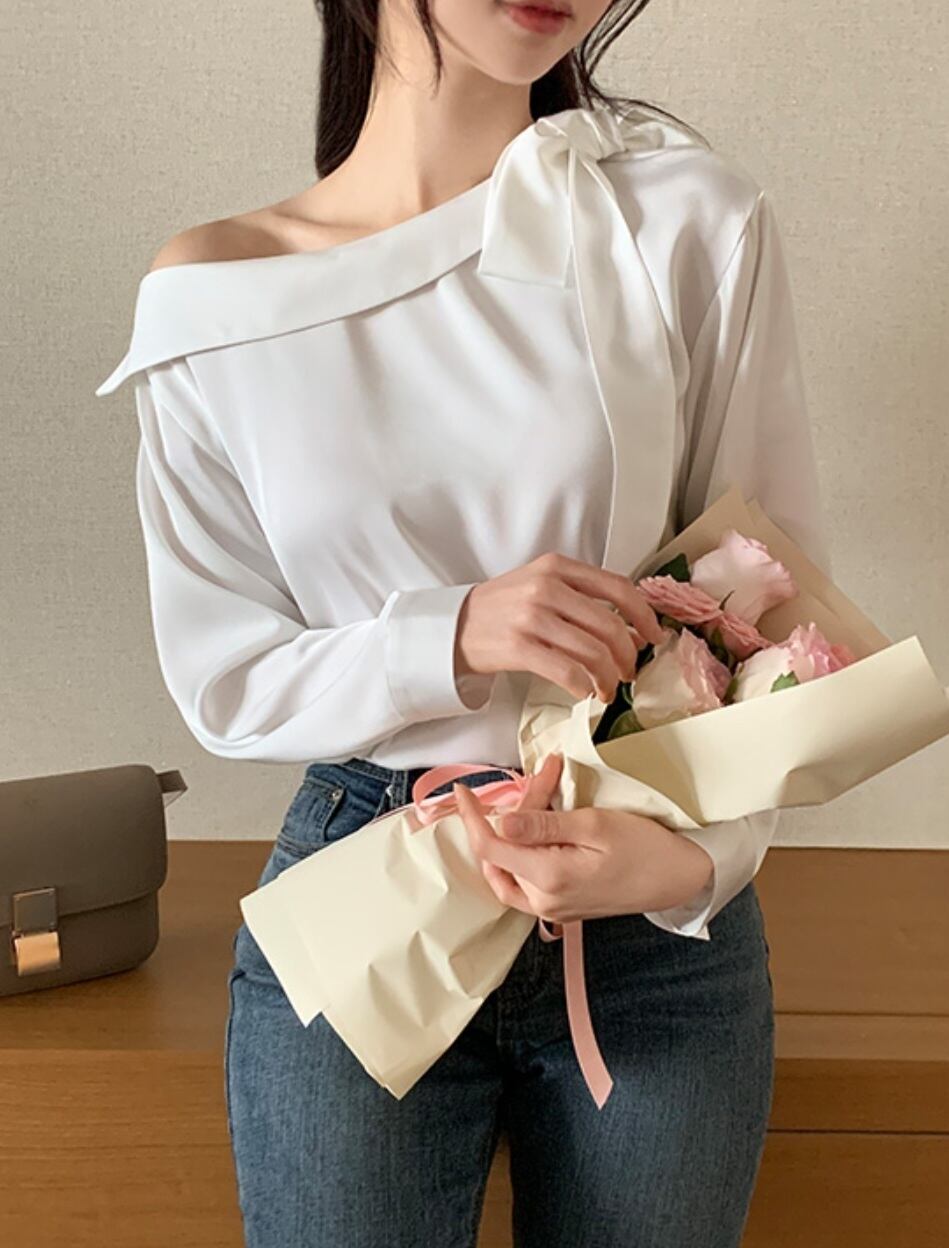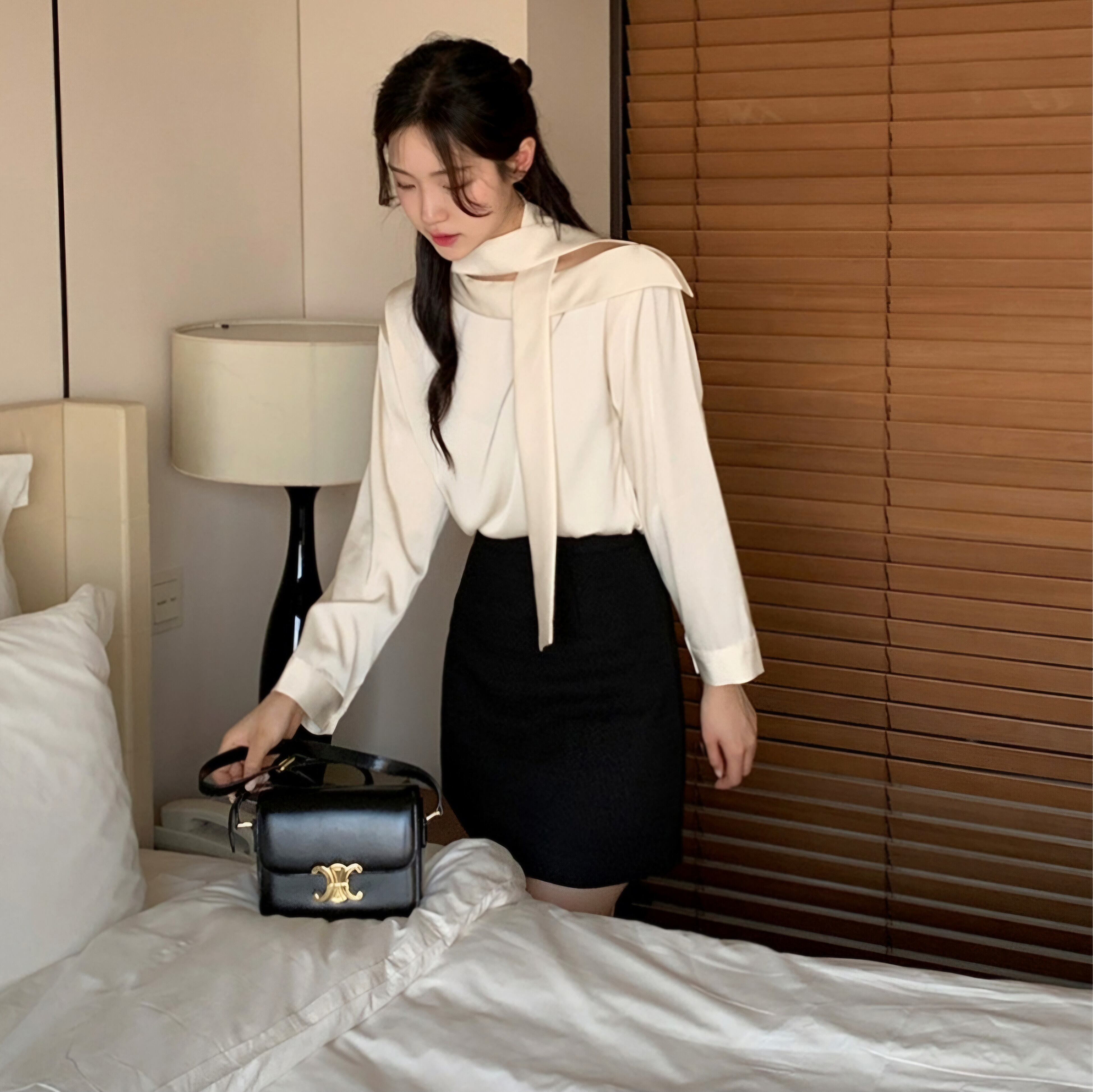 ファッション通販サイト きれいめコーデ シンプル タイブラウス トップス オフィスルック フェミニン 韓国 韓国直輸入 韓国ファッション モノトーン